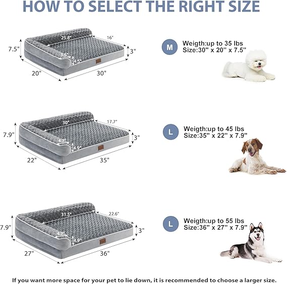 - L-SHAPED DOG BED: This XX large plus dog bed adopts L shaped design, the dog beds Soft and comfortable rails provide extra support for our pet's head and neck, and the dog sofa bed has no railings on two sides, providing plenty of room for pets to stretch out. The dog beds for large dogs allow pets to be more soothed and relaxed and to fall into a deep sleep.