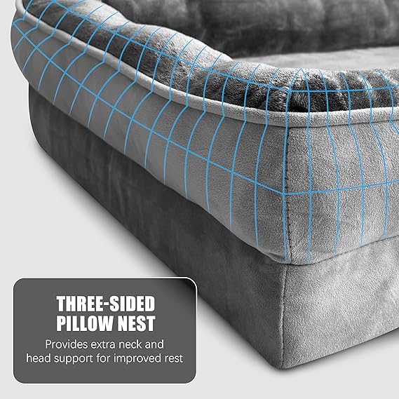 Orthopedic Dog Bed with Sides - Dog Sofa Beds for Medium Dogs, Supportive Foam Pet Couch Bed with Washable Removable Cover, Waterproof Lining and Non-Slip Bottom, Grey - M