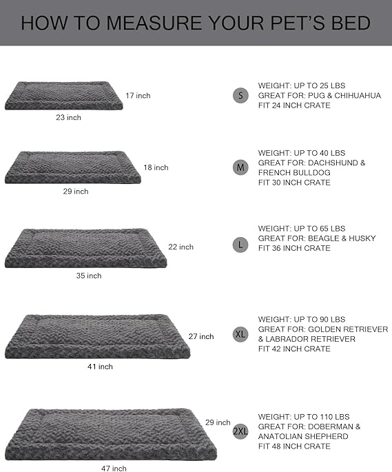 - Universal for All Seasons - In the summer the dogs will be so afraid of the heat that they won't be able to use too thick pads, but our dog crate bed have a moderate thickness, both a certain degree of support, and the dog will not feel hot and stuffy lying on the mat. Four seasons universal, all year round this one mat is enough to use!