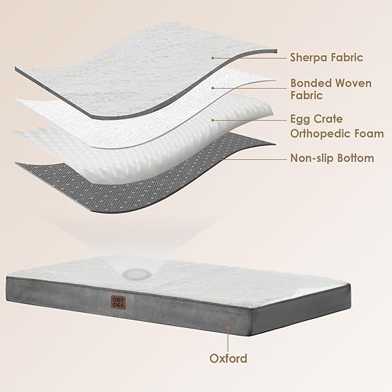 Provide your cherished furry companion with the utmost comfort and support they deserve with the EHEYCIGA Washable Dog Bed for Large Dogs. This exceptional bed is specifically designed for large dogs, offering a combination of orthopedic support, durability, and convenient maintenance. Our large dog bed features a plush and supportive cushion that provides optimal orthopedic support for your dog's joints and muscles. The spacious design ensures ample space for your pup to stretch out and relax. The premium construction guarantees long-lasting durability to withstand your dog's playful antics and everyday use. The removable and washable cover makes cleaning a breeze. Simply unzip the cover and toss it in the washing machine to freshen up the bed easily. The grey color adds a touch of elegance to any room, seamlessly blending with your home decor. This versatile pet bed is perfect for various scenarios, including crates, kennels, and as a standalone bed. It offers a comfortable and cozy spot where your dog can rest, relax, and sleep peacefully. Invest in the EHEYCIGA Washable Dog Bed for Large Dogs and provide your furry friend with a comfortable and durable resting place. Let them enjoy the benefits of an orthopedic bed while you appreciate the convenience of easy maintenance. Upgrade your pet's sleeping experience with this high-quality dog bed and make them feel loved and pampered.