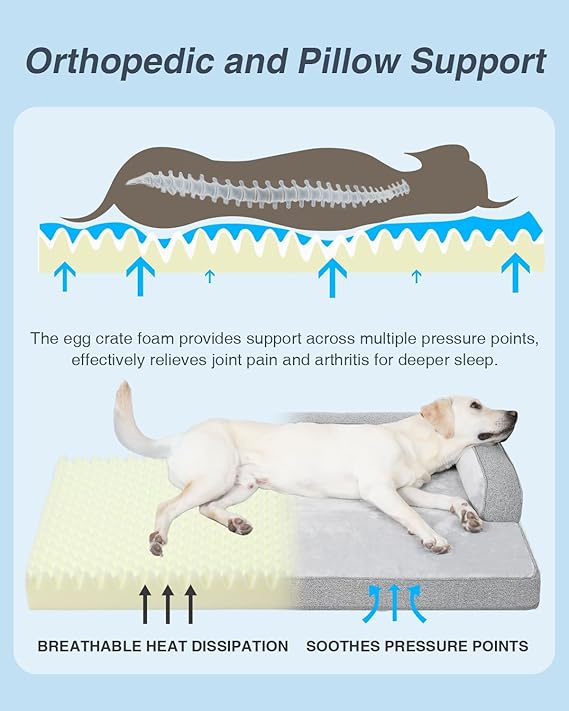 KSIIA Washable Dog Bed Large Sized Senior Dog, Orthopedic Warm Soft Pet Sofa Waterproof Pet Couch with Sides, Non-Slip and Egg-Crate Foam Big Beds with Removable Cover, 35x22Inch, Grey