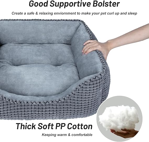 - Raised Rim Design: Supportive raised sides of the rectangular dog bed create a safe & relaxing enviornment to make your dog and cat curl up, have fun, provide head and neck have a good support.