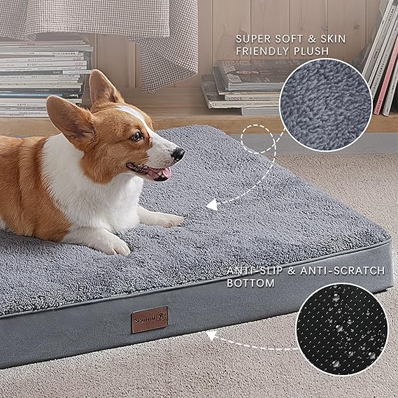 - Orthopedic Dog Bed - Filled with 4" 28D mattress-like foam evenly distributes dog’s weight, which provides maximum support and comfort for pets of all ages, especially puppies or older dogs.