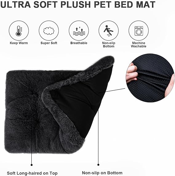 - First opening due to vacuum packaging and long shipping times, dog bed may be relatively flat. Please Shake it completely and pull the fiber apart with your fingers to open it. Or put the dog mat in the dryer at the low temperature drying for a few minutes, the dog mat will completely unfold.