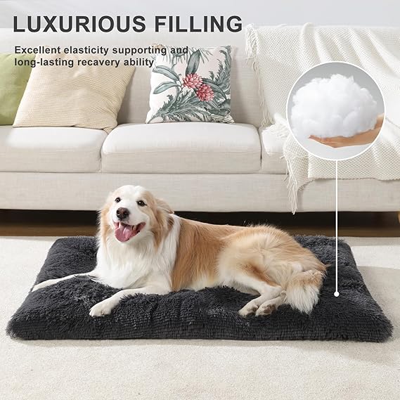 Vonabem Large Dog Bed Crate Pad 36 inch, Washable Pet Beds Medium Small Sized Dogs, Deluxe Plush Anti-Slip Puppy Mats for Sleeping, Soft Kennel Pads 35 * 23 inch Grey