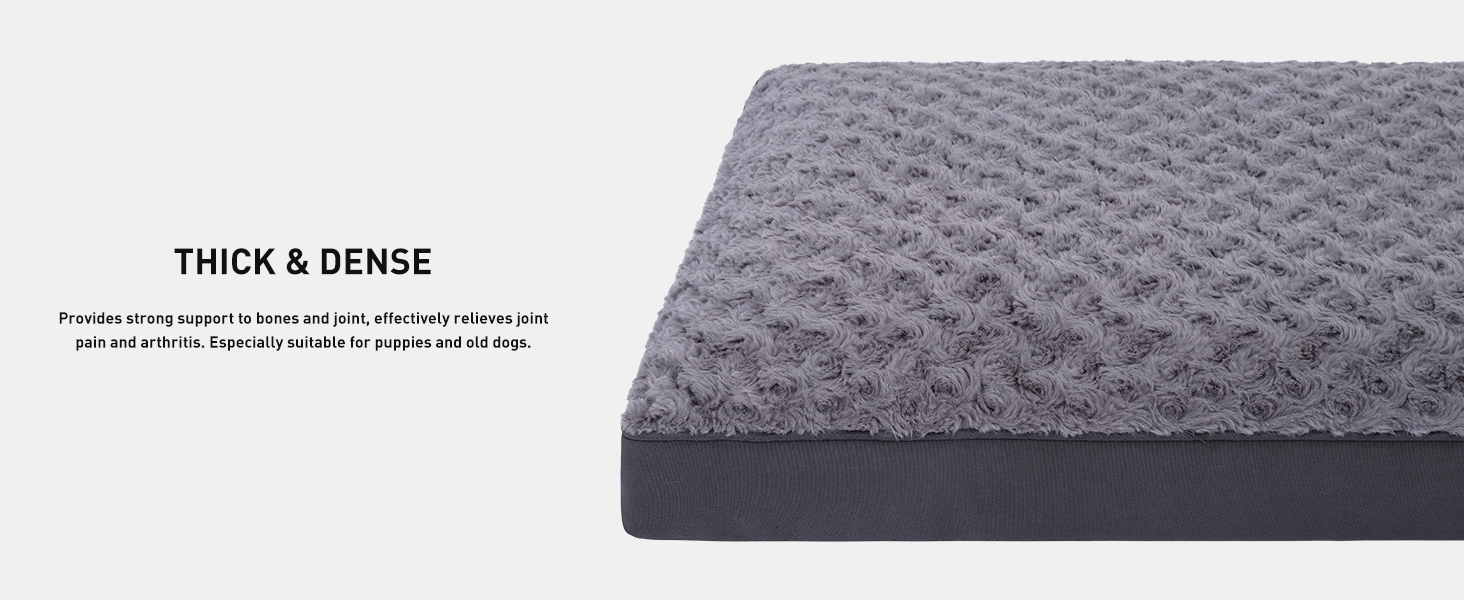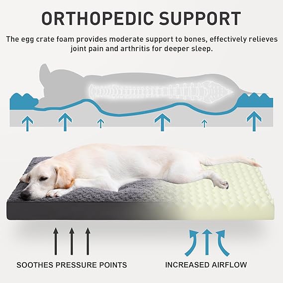 - Orthopedic Support - Our dog crate bed equips a 4-inch thick high-density egg crate foam. The excellent elasticity supporting and long-lasting recovery ability comfort our dogs with strong support to bones and joint, effectively relieve joint pain and arthritis. This dog bed is especially suitable for puppies and older dogs.