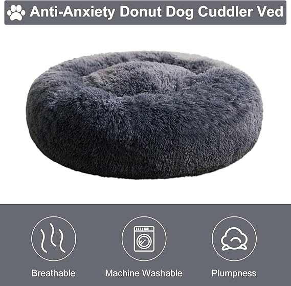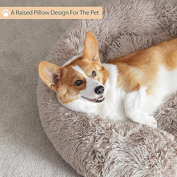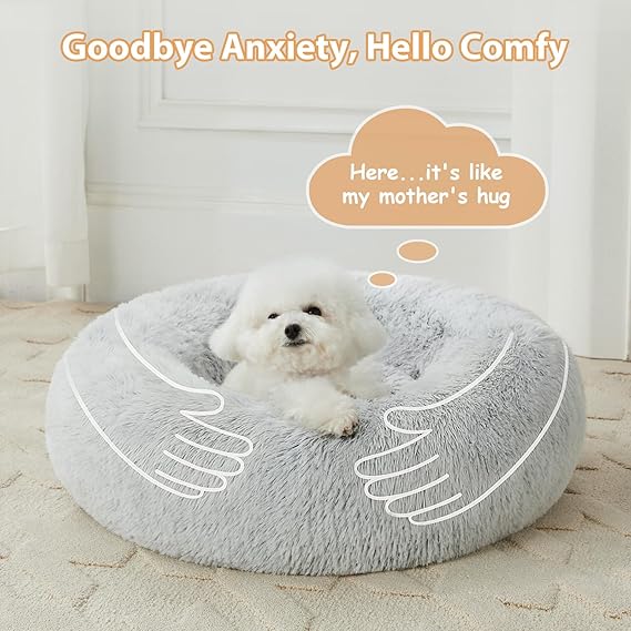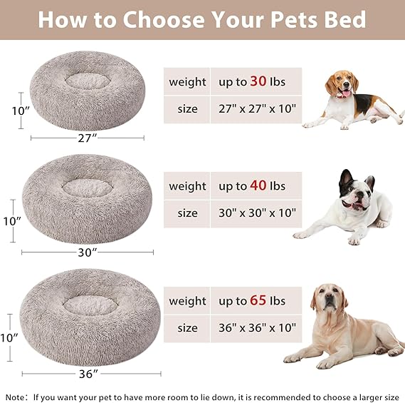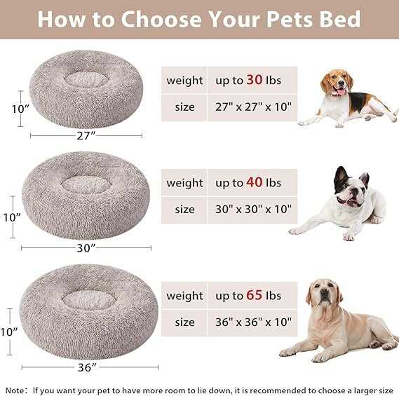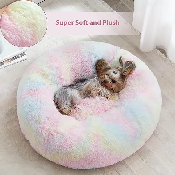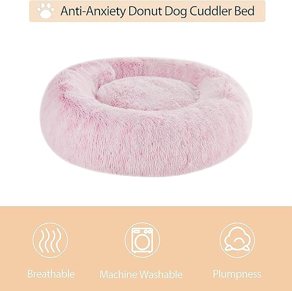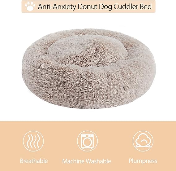 WNPETHOME Donut Dog Beds Large Sized Dog,Anti-Anxiety Caming Large Pet Bed,Fluffy Faux Fur Plush Puppy Bed,Warming Cozy Soft Round Bed for Pet, Cat Cuddler Cushion