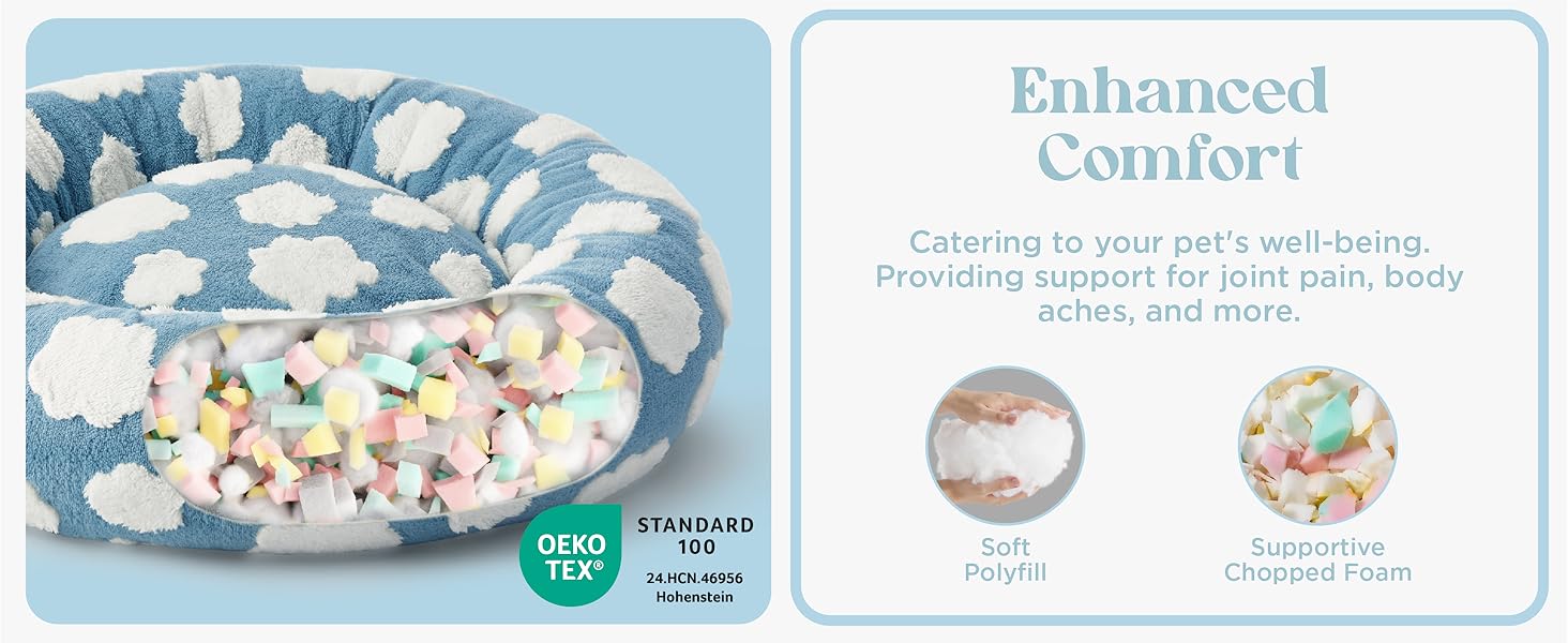 - Cozy Cuddle Nest: The Lesure Donut Bed offers a snug and comforting retreat for your furry friend with its soothing sherpa fabric, raised rim, and a plush filling of chopped foam and polyfill in an ideal 2:1 ratio for optimal relaxation. The ultimate heartwarming pet bed is the most adorable gift for Valentine's day and any loveable occasion that promises your pet a luxurious and warm retreat guaranteed to fill your heart's desires