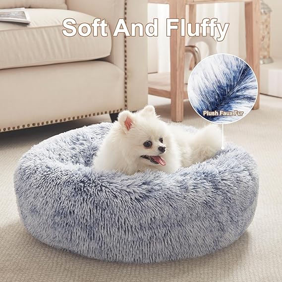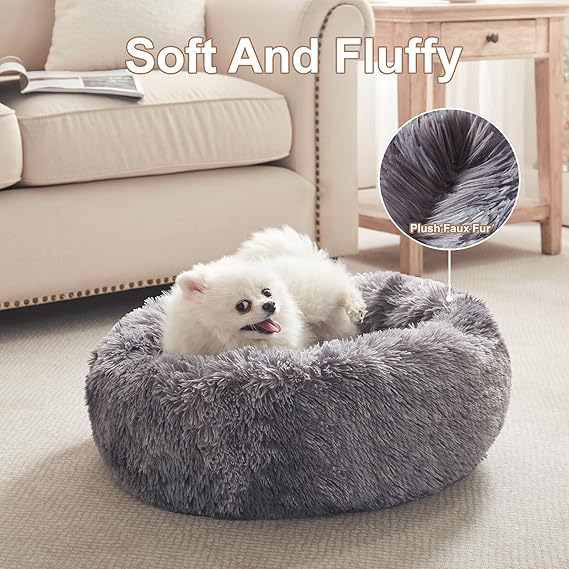 - Calming & Comfortable:Designed in a donut shape with raised sides,this calming dog bed creates a snug and secure space that helps ease anxiety.Ideal for pets who crave comfort and security during rest or sleep