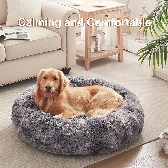 36 inches Donut Dog Bed for Large Dogs - Calming Fluffy Round Pet Bed with Removable & Washable Cover,Fits up to 80 lbs Pets (Dark Grey,Large)
