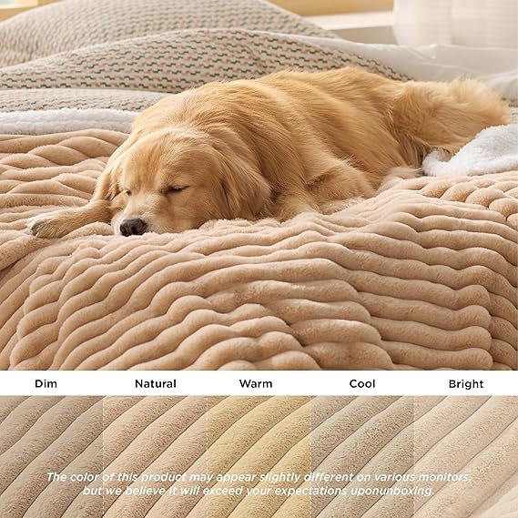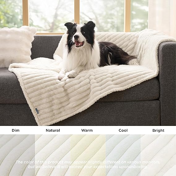 Bedsure Waterproof Dog Blankets for Large Dogs - Soft Pet Cat Blanket Corduroy Fleece for Couch Bed Protector Washable, Cozy Calming Reversible Furniture Protection for Puppy,50"x60", Cream