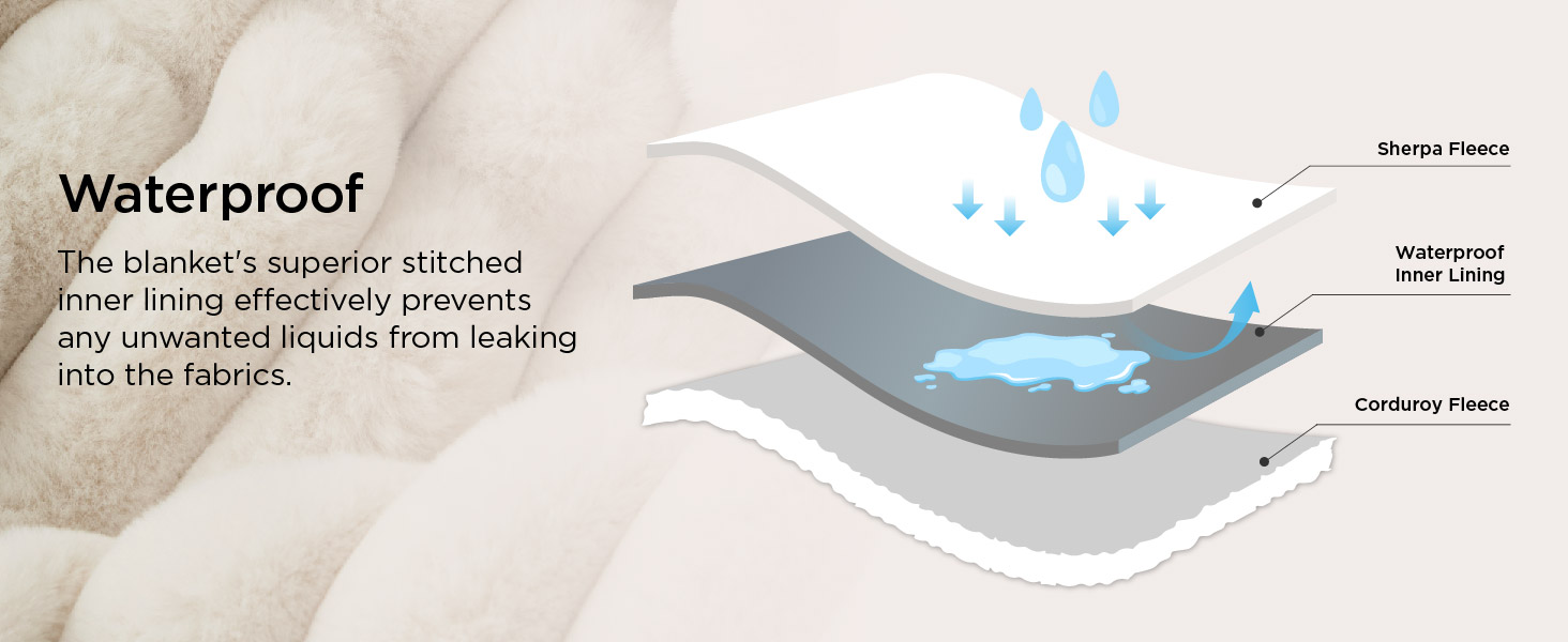 - Waterproof & Spill Resistant Lining:The interior lining of our dog blanket boasts a waterproof design that effectively prevents and protects any spills from leaking from the sherpa fabric into its corduroy fleece. When it comes to your cozy vibes, we are dedicated to not only design pet essentials that are cozy and stylish but functional and effortless to maintain.