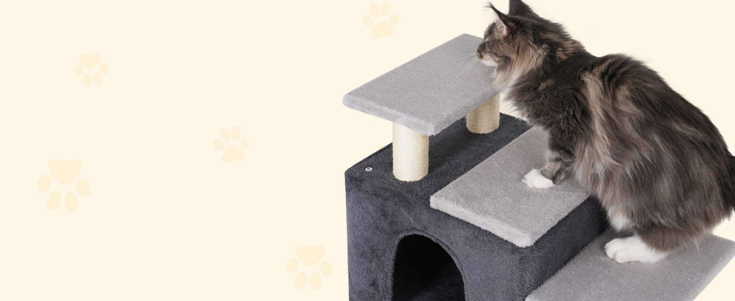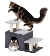 - Pet Stairs with Cat Cave: This cat tree tower has 3 ladders, a 15.7''x12.9'' large cat condo and scratching posts, which enrich the diversity of cat activities and utilize the space vertically