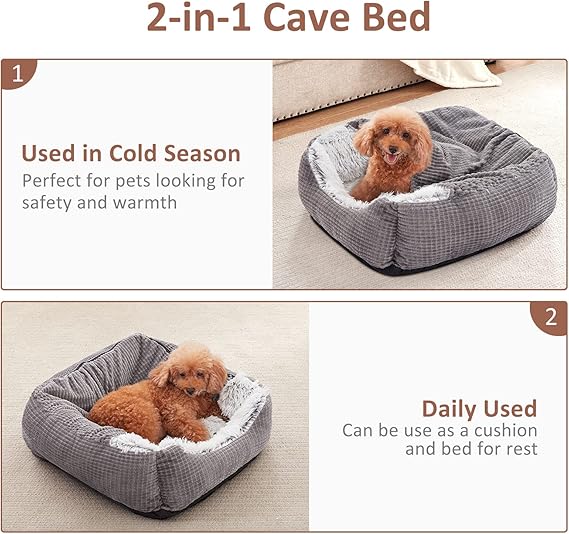 - 【Care Instructions】Due to the vacuum packaging, the pet bed will be compressed during transportation, the puppy bed will have wrinkles when first opened, Before using please rub gently on the cat bed for a few minutes to spread the PP Polyester filling to restore its fluffy state.