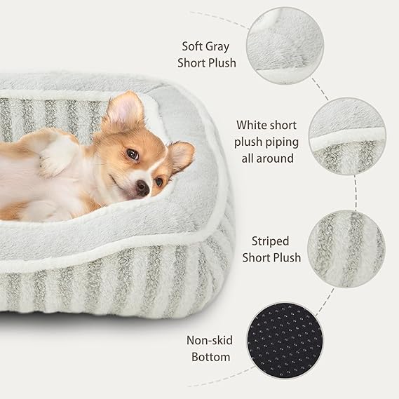 Dog Bed for Extra Small Dogs Breeds,Cat Bed,Puppy Kennel Bed with Pillow,Washable Deluxe Plush Dog Crate Beds,Comfy Durable Rectangular Pet Sleeping Bed & Non-Slip Bottom,Grey (19"X16")