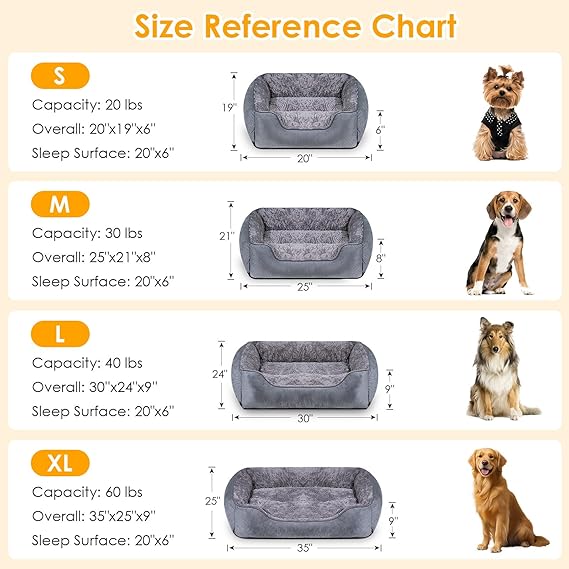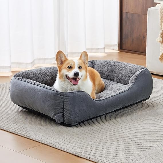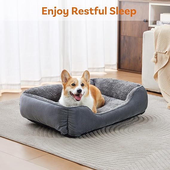 Dog Bed for Medium Large Dogs Washable, Super Soft Rectangle Dog Beds Medium Large Size, Warming Durable Pet Bed with Anti-Slip Bottom, Anti-Anxiety, Grey, 30 x 24 x 9inch