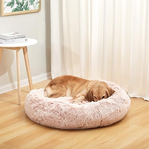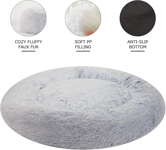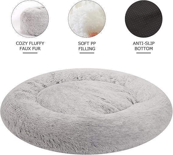 Bedfolks Calming Donut Dog Bed, 36 Inches Round Fluffy for Large Dogs, Anti-Anxiety Plush, Machine Washable (Dark Grey, Large)
