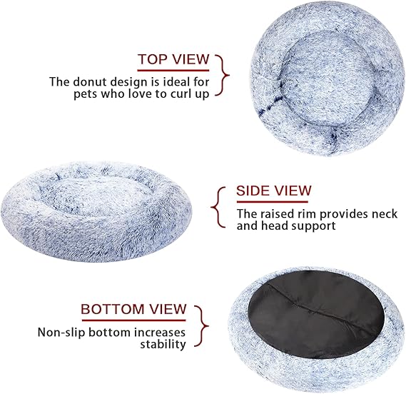 - [Calming & Anti-Anxiety] The donut shape of the dog mat cushion is ideal for pets who love to curl up. The raised rim provides neck and head support and creates a sense of security, which helps your dog to relax the muscles