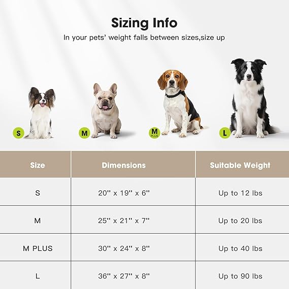- ๐ ๐๐น๐๐ถ๐ฝ๐น๐ฒ ๐ฆ๐ถ๐๐ฒ๐: Perfect for small puppies and cats under 12lbs (20"x19"x6"), medium dogs or large cats under 20lbs (25"x21"x7"), dogs under 40lbs (30"x24"x8"), and large dogs up to 90lbs (36"x27"x8"). Tip: If your pet is between sizes, choose the larger one for extra comfort.