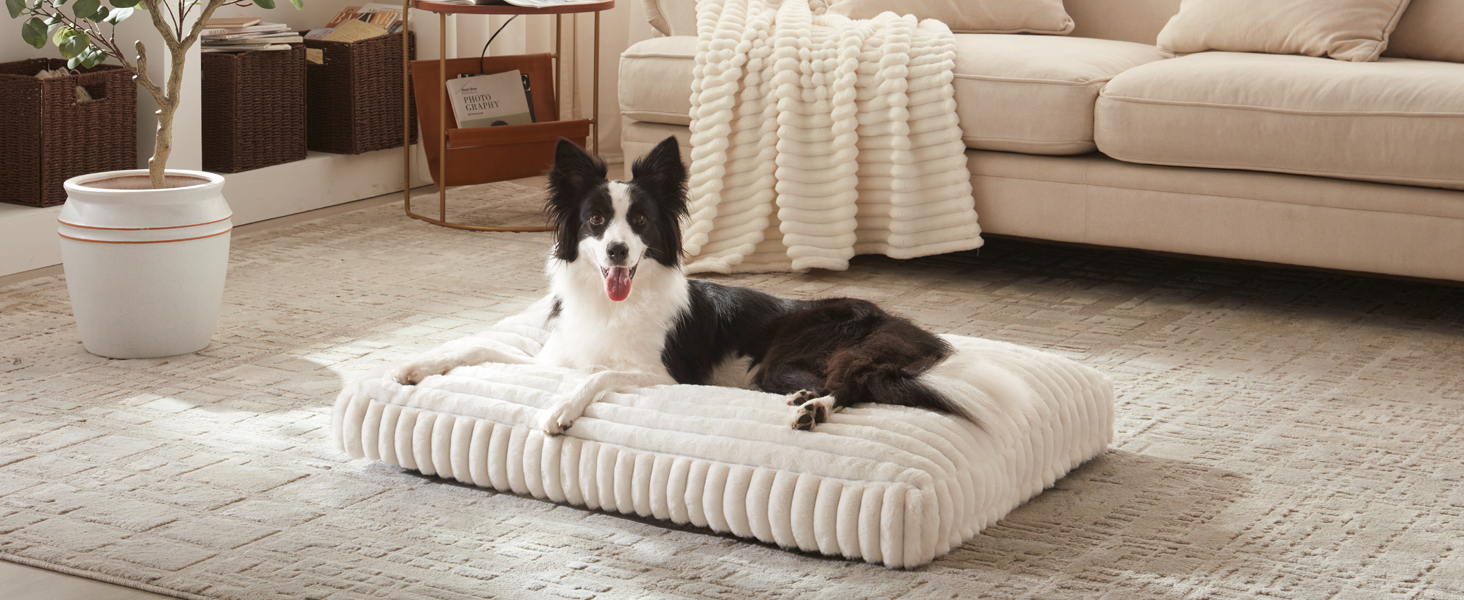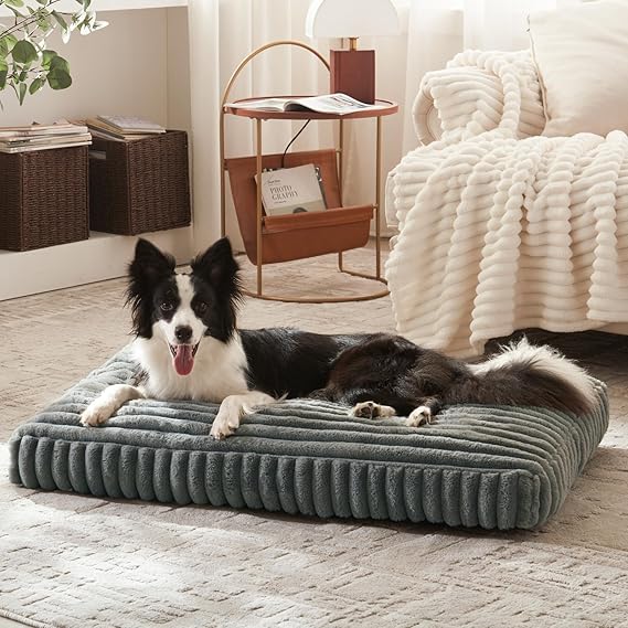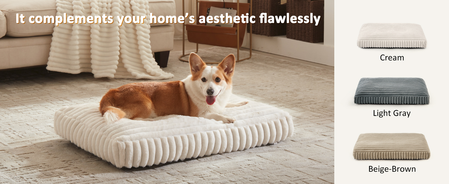 - CUTE FLUFFY COMFY STYLE: Infuse every corner with warmth using our dog beds large sized dog cute design, offered in a range of soft hues. This aesthetic and fluffy cushion seamlessly elevates the vibe of your bedroom, living room, kennels, or balcony. Dog bed for crate blends practical comfort for your pet with a touch of understated elegance, making it a charming addition that complements any decor.