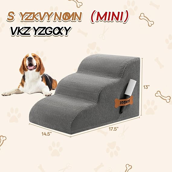 - Please note that due to trimming and vacuum compression, the sponge may take a minimum of 48 hours to fully rebound, and there may be variations in size. Our dog stairs come in a variety of heights, colors, foam densities, and shapes to suit your taste and your pet's needs. Choose the ideal combination for your space and your pet’s comfort. suitable for small and medium dogs