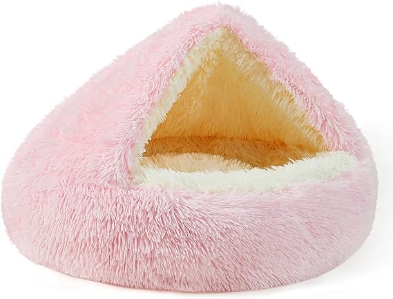 NOYAL Round Hooded Donut Dog Bed for Small & Medium Pets - Plush Fluffy Anti-Anxiety Cat Cave Bed with Cover