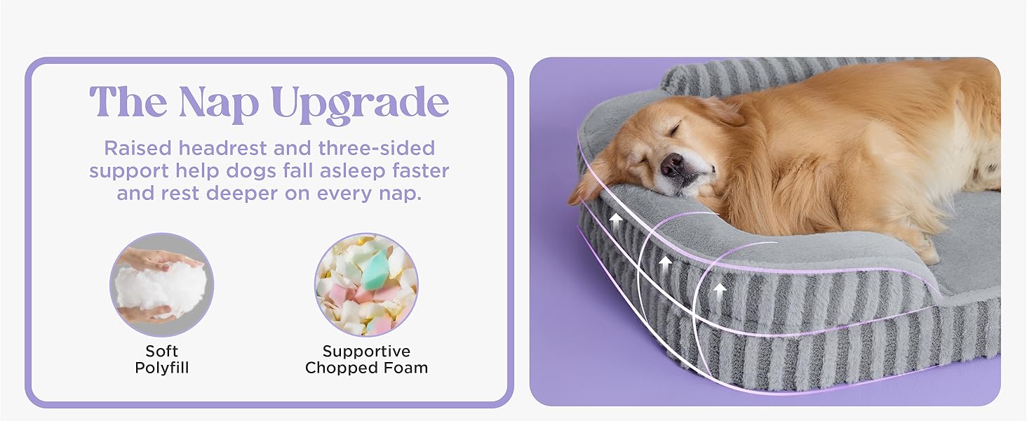 - Head and Neck Support:Thoughtfully designed with a bolstered headrest filled with soft, crushed sponge to deliver exceptional cushioning and support. Your furry friend will love cradling in to enjoy long-lasting rest and relaxation.