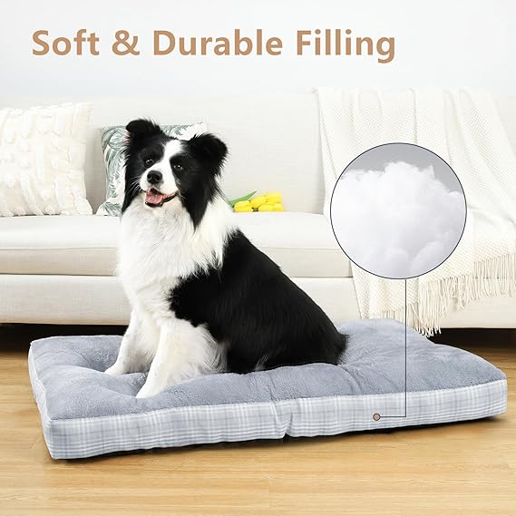 - 【Non-Slip Bottom Design】Our extra large dog bed has a non-slip and scratch raised point design that keep the dog crate pad remains in the position and ensure pets' safety. Both lively puppies and old dogs can walk around on the dog bed with peace of mind.