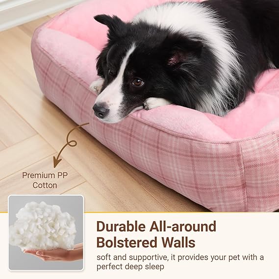 - 【Supportive & Comfortable Sides】Filled with premium pp cotton, the four sides of our rectangle dog bed provide great comfort and support. It not only offers a nice sleep for the puppy but also benefit the health of the spine and cervical vertebrae.