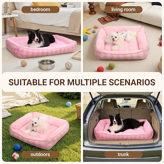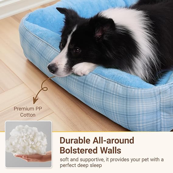 - 【Super Cozy Fabric】The dog bed for Xlarge dogs features luxurious soft fabric that provide a calming feel and suits for all seasons to use. It also adopts fashionable checkered design that matches various styles of furniture and decorate your home.
