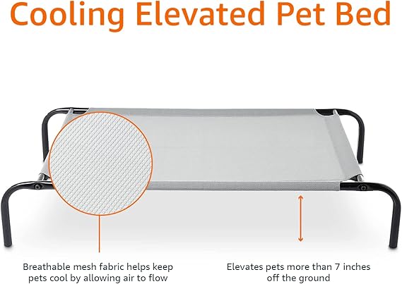 Amazon Basics Breathable Cooling Elevated Dog Bed with Durable Metal Frame, Medium, 43 x 26 x 7.5 Inch, Grey