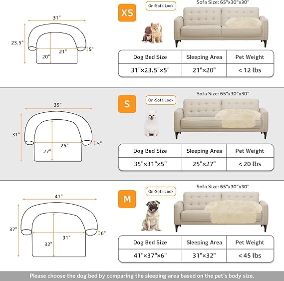 - 【Multiple Size Selection】The couch pet bed has 5 sizes for you to choose from. M: 41"x37" dog bed for medium dogs. L: 45"x37" dog bed for large dogs. XL: 53"x39.3" dog bed for large dogs. We have enlarged the sleeping area for pets to give dogs more space.