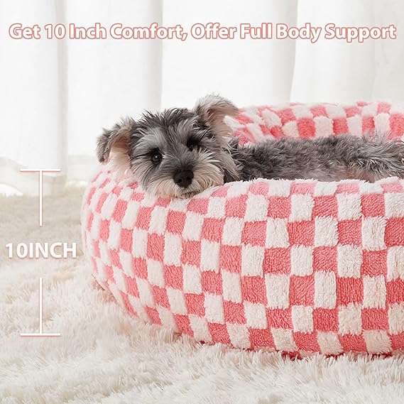 BFPETHOME Donut Dog Bed for Small Dogs, Round Cat Beds for Indoor Cats, Calming Pet Bed for Puppy and Kitty with Non-Slip Bottom, Cute Fancy Dog Bed Machine Washable Puppy Bed