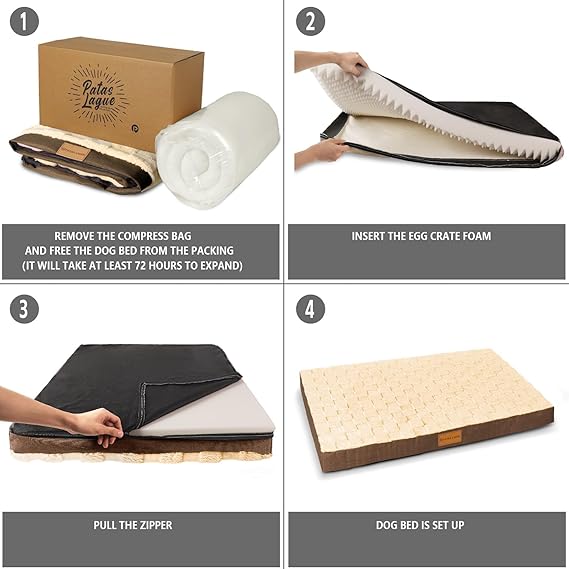 - Care Instructions: The removable cover of the dog bed is machine washable just simply machine wash and tumble dry; please note that the egg crate foam is not washable; as the foam is compressed it will take about seventy-two hours to expand