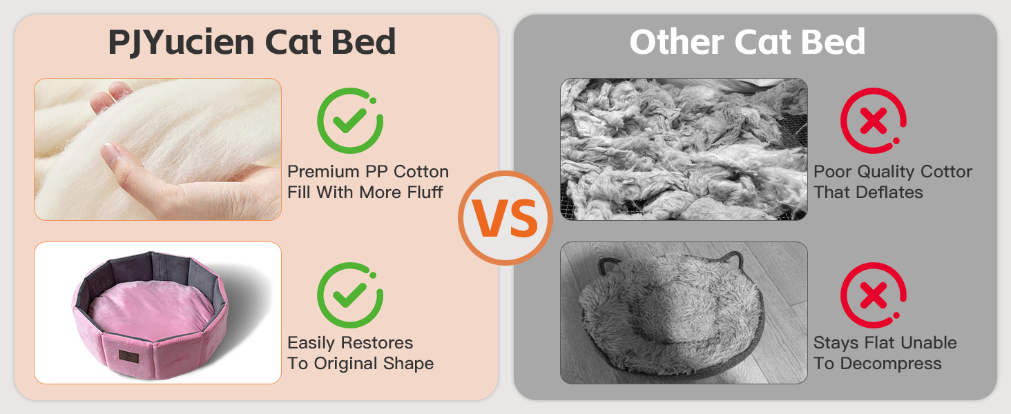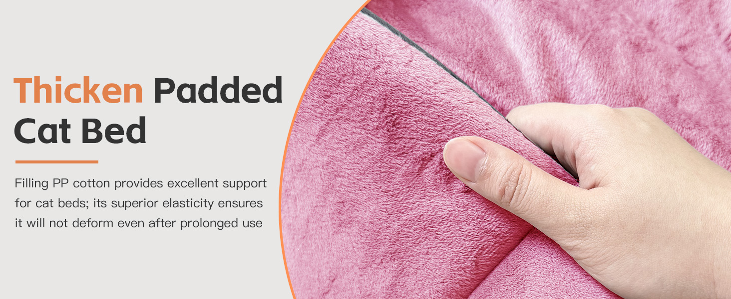 - Outer Ring Filling PP Cottonds: The outer fabric of the cat bed is filled with PP cotton, which is more fluffy and less prone to collapse than other materials on the market. This is a kitten beds for indoor kittens that is thickly padded to effectively help the small cat bed provide better support, allowing cats to play and rest freely in the cat bed