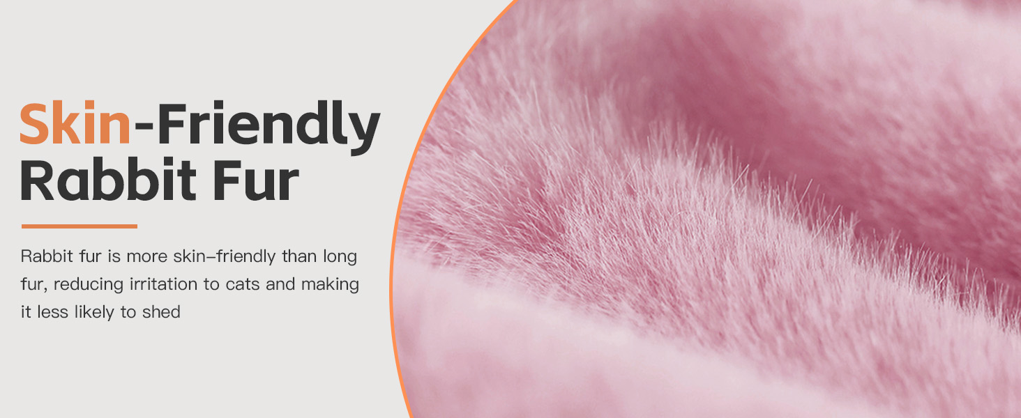 - Faux Rabbit Fur Anti-shedding Fabrics: This fluffy cat bed is made from anti-shedding synthetic rabbit fur fabric. It has undergone over 1,000 experimental tests, which show that compared to the commonly available long-pile fabrics on the market, cat beds for indoor cats made of short-pile fabrics cause less skin irritation for cats and are more skin-friendly. Even indoors, these cat beds made from shed-resistant rabbit plush material no longer pose any hygiene concerns
