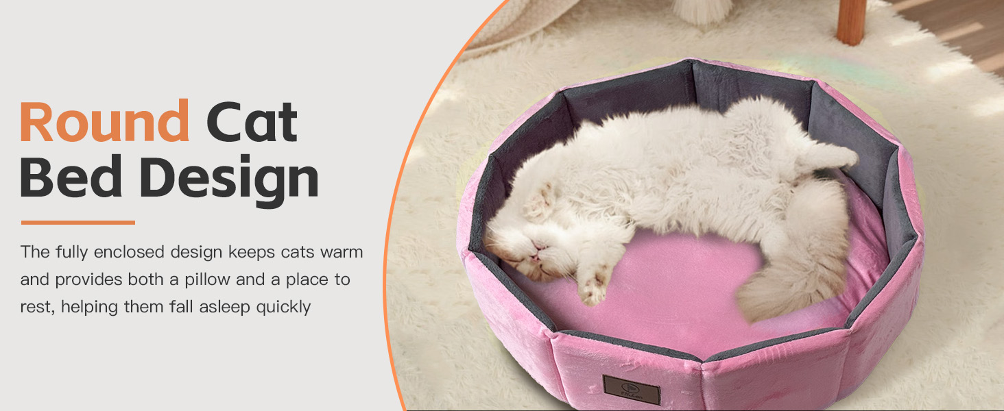 - Round Cat Beds Are Warmerds: Round cat beds feature a raised, choose this is small cat beds for indoor cats. It's fully enclosed anti-rollover structure improves cat safety when using and creates a warmer, more comfortable sleeping environment for your cat. These small cat beds are suitable for curled-up kittens or young cats and for pets weighing only 15 pounds
