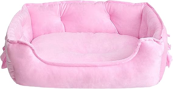 - CUTE COLORS AND SHAPES: The color of the pet bed can also affect the mood of life. Bright colors can keep the dog in a bright mood. The design of the side bow increases the beauty of this pet bed and enhances the fun of the dog.