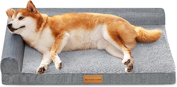 - L-Shaped Dog Sofa Bed: L shaped design with foam edges provides extra support for pet's head and neck; two flat sides provide plenty of room for pets to stretch out; enhances snuggling and burrowing comfort
