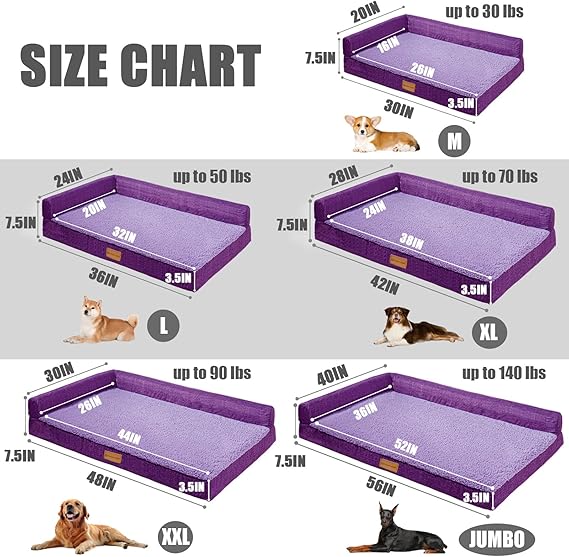 - More Options: Five colors are available, with each color providing five standard sizes; M: 30''x20'' for pets up to 30 lbs; L: 36''x24'' for pets up to 50 lbs; XL: 42''x28'' for pets up to 70 lbs; XXL: 48''x30'' for pets up to 90 lbs; Jumbo: 56''x40'' for pets up to 140 lbs