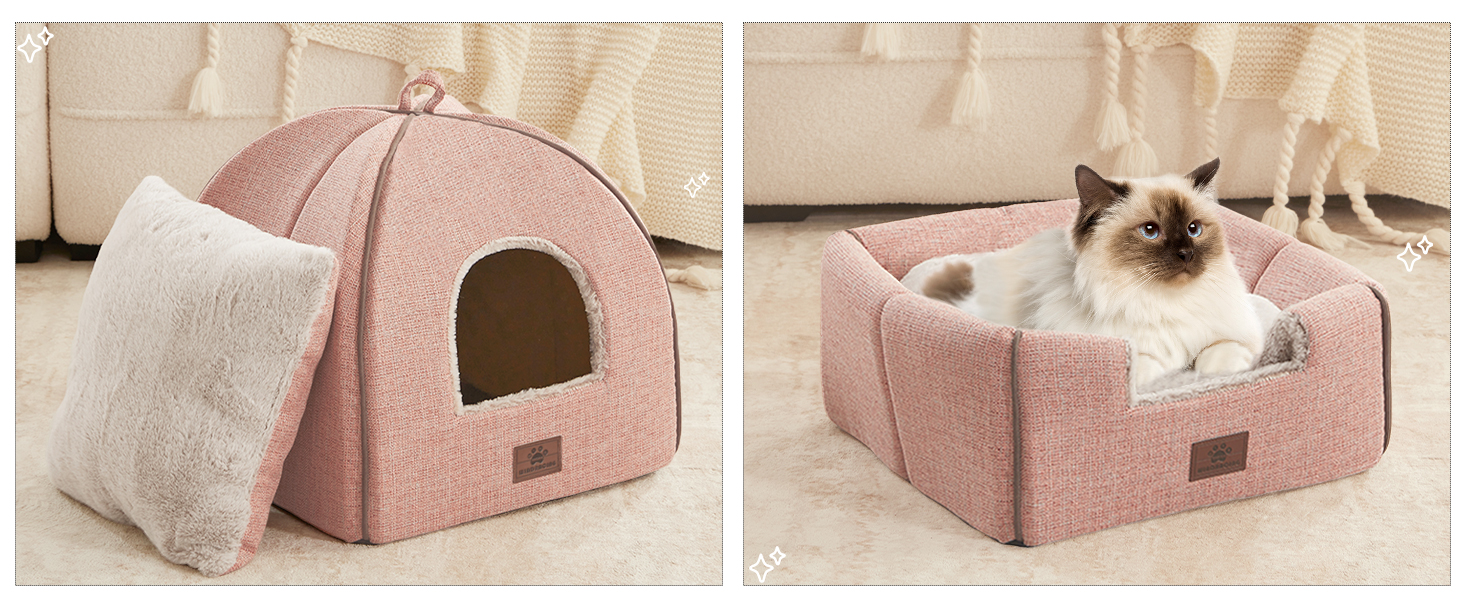 - 【Foldable Cat Bed】Comfortable cave cat tent, very convenient to carry and store, can be folded in seconds, very convenient for travel. , 2 in 1 closed pet bed function (open and close switch)