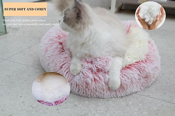 - 2.Faux Fur Material: This Cat Dog bed with cover made of high quality luxurious faux fur,provides a warm soft and comfort place for your pets to sleep. The raised edges create a sense of security and provide head and neck support, while the super soft fur lounger can relieve joint and muscle pain.
