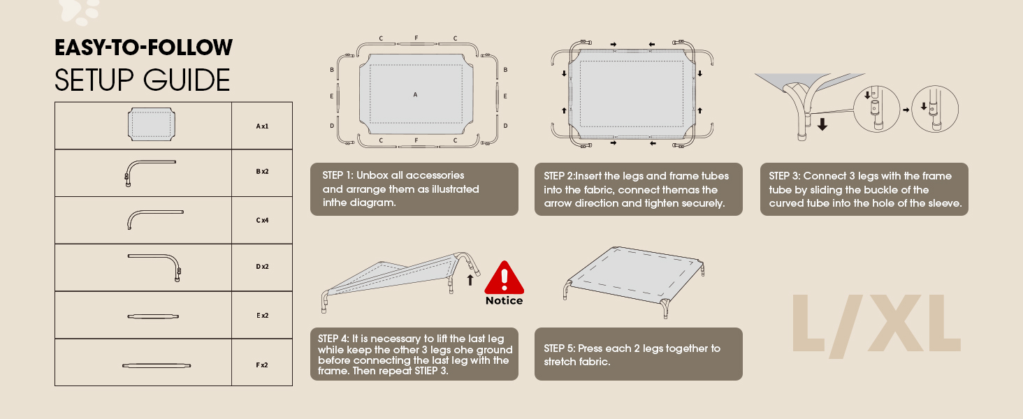 - 【Easy Care】This raised dog bed's mesh fabric is simple to clean, if the outdoor dog bed is soiled or dog hair etc., you just need to rinse the mesh with water and wipe the surface of the raised dog bed. ensuring your pet's sleeping area stays hygienic.