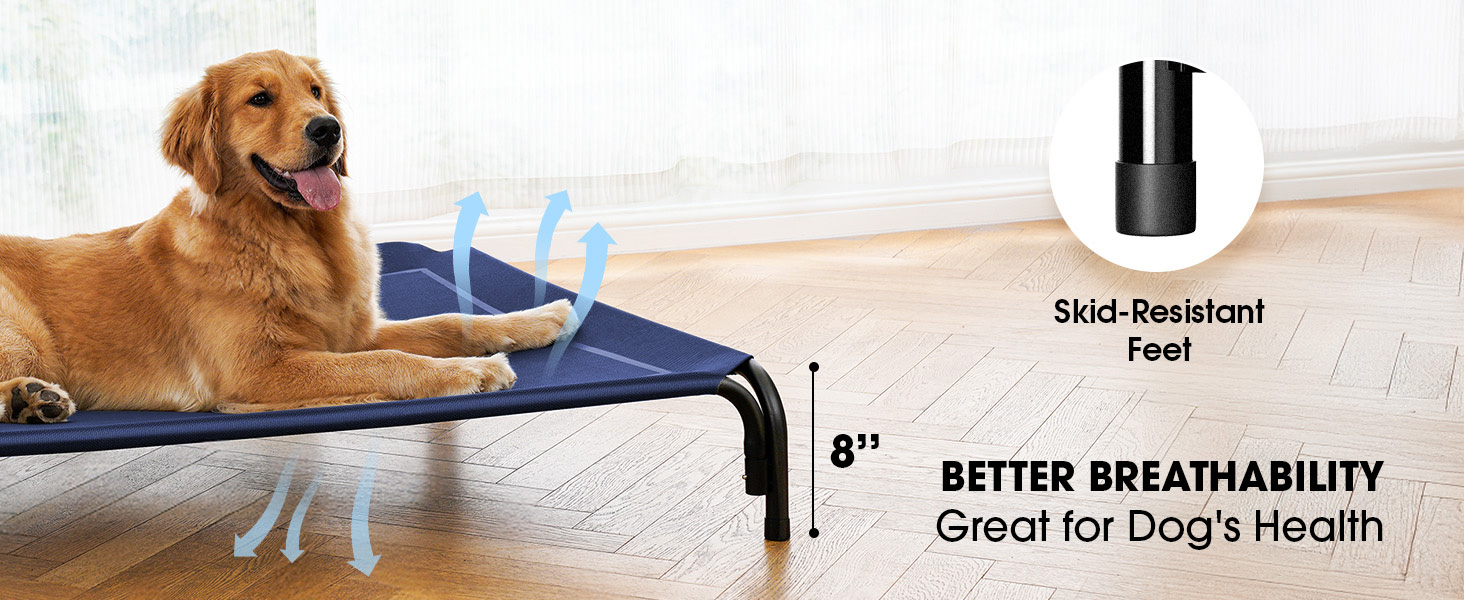 - 【Great for Dog's Health】This elevated dog bed is made with high-quality Teslin mesh, providing excellent support and even pressure distribution to reduce joint and muscle pain. This elevated dog bed elevating pets over 8 inches off the ground, promoting air circulation to keep your pet cool and comfortable, perfect for a cooling elevated dog bed experience.