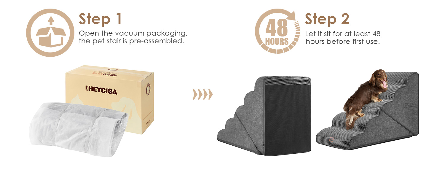 - MULTIPLE STEP SIZES - This dog stair has 2 steps, 3 steps, 4 steps and 5 steps to choose. Our 2-step stairs fits for chair/sofa/bed up to 13inch. 3-step stairs fits for chair/sofa/bed up to 17inch. 4-step stairs fits for chair/sofa/bed up to 21inch. And 5-step stairs fits for chair/sofa/bed up to 24inch.