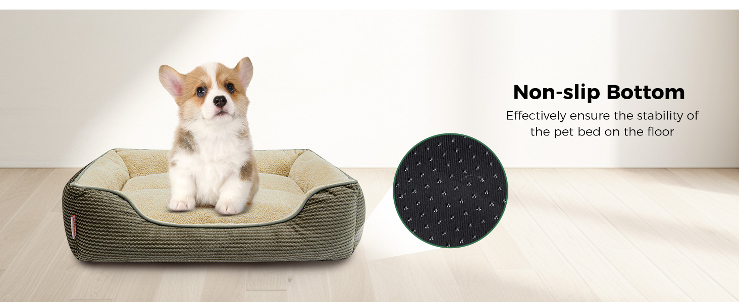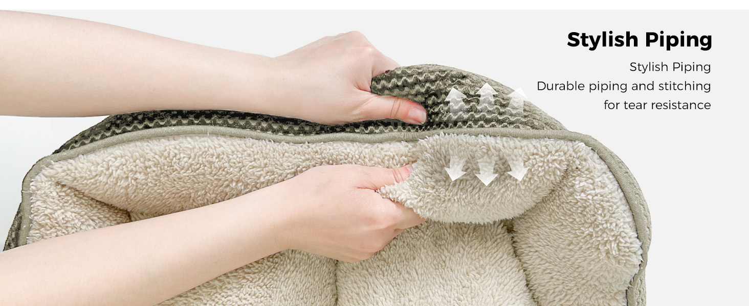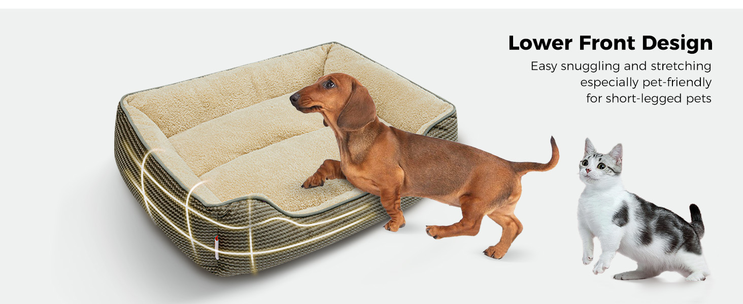 - Thoughtful design: 1) Raised sides can protect pet's head and neck, ensure them a sound sleep. 2) Lower front design is convenient for pets to enter and exit. 3) Double-sided removable washable sleeping cushion gives great comfort.