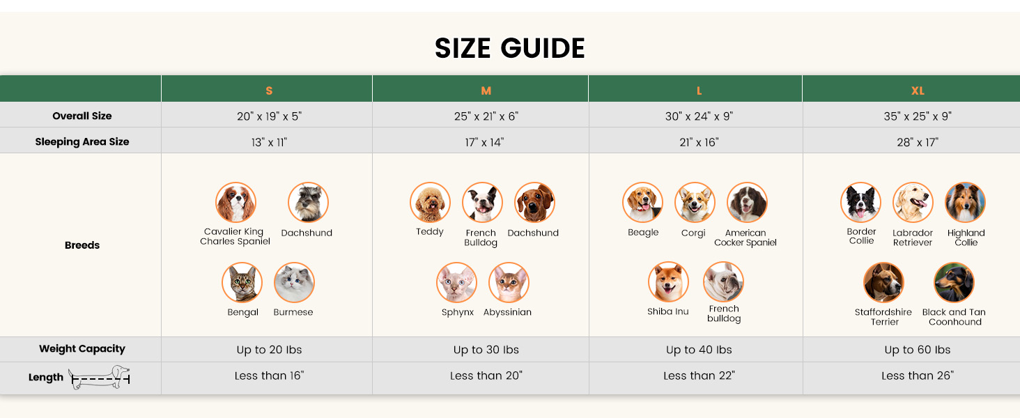 - Optional size and color: Easy washable dog bed. S(20"x19"x5")for small pets up to 20lbs; M(25"x21"x6")for small/medium pets up to 30lbs; L(30"x24"x7")for medium pets up to 40lbs; XL(35"x25"x9")for medium/large pets up to 60lbs.