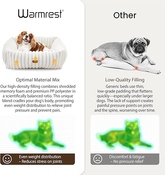 - Luxury Soft Fabrics:Unlike cheap beds that flatten or tear easily, ours uses premium rabbit fur + reinforced stitching to resist digging/claws. The 4:1 mix of chopped foam and high-loft PP cotton won’t collapse—stays plush even after washing!