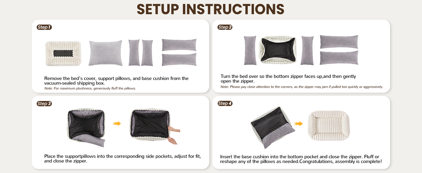 - Easy Care : The removable, washable cover makes maintaining cleanliness effortless. Simply machine wash and tumble dry to keep the bed fresh and clean. Please use your hands to pat, shake the dog bed and wait for 1-2 days to wait it back to fluffy status before using.