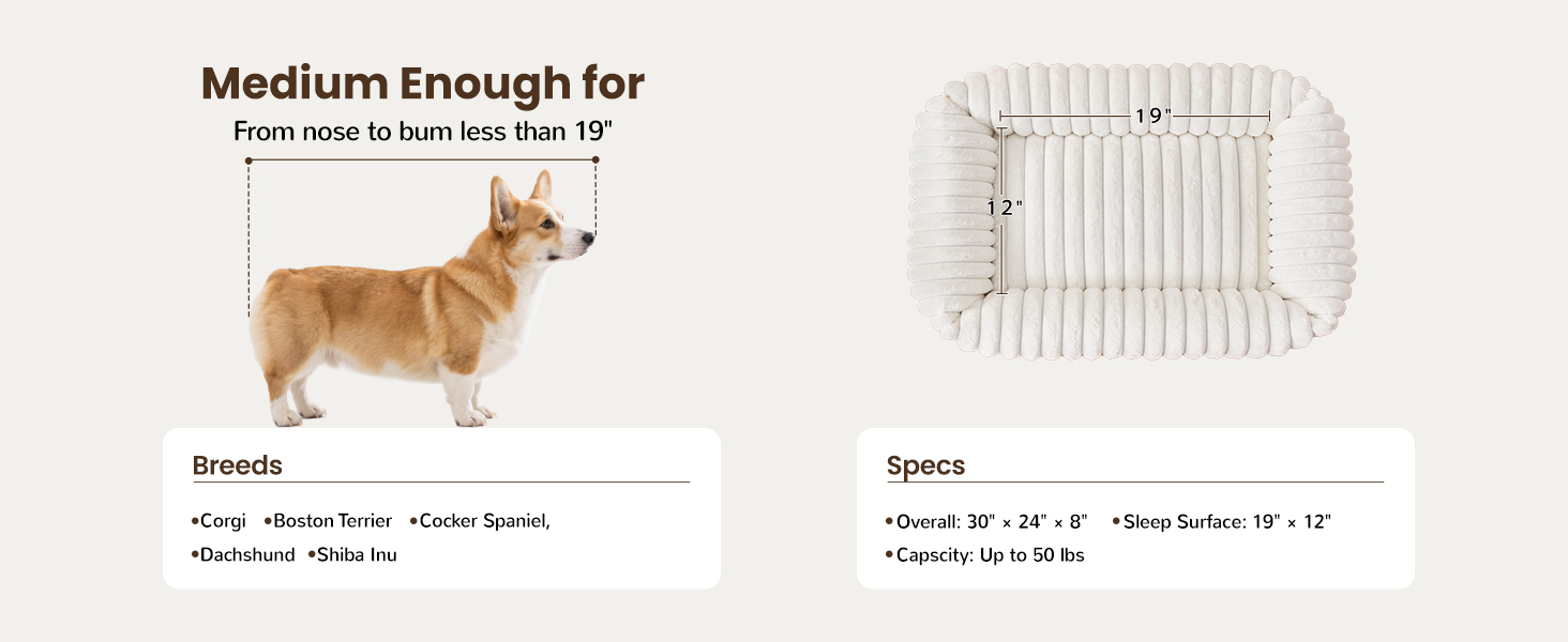 Orthopedic Dog Bed for Small Medium Dogs - Washable Rectangle Corduroy Fleece Pet Bed with Removable Cover and Nonskid Bottom, Calming Puppy Bed Soft Pet Sofa, Cream(20x19x6inchs)